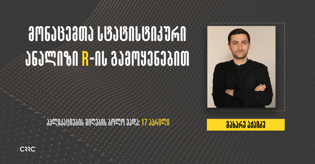 კურსი ორიენტირებულია მონაცემთა სტატისტიკური დამუშავებისა და ინტერპრეტაციის უნარების განვითარებაზე პროგრამული ენის – R-ის გამოყენებით. ის ფოკუსირებულია რაოდენობრივი მონაცემების პრაქტიკულ ანალიზზე და მოიცავს მონაცემთა დამუშავებისა და ანალიზის სრულ პროცესს: