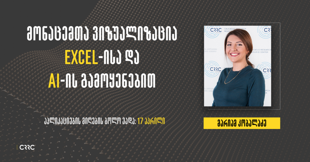 კურსი აერთიანებს თეორიულ ნაწილსა და პრაქტიკულ სამუშაოს. კურსის მონაწილეები იმუშავებენ რეალურ მონაცემებზე, თავად მოამზადებენ ცხრილებს და ააგებენ დიაგრამებს Excel-ში, ასევე, ისწავლიან დიაგრამებისა და ინფოგრაფიკების შესაქმნელად ხელოვნური ინტელექტის პროგრამების გამოყენებას.
