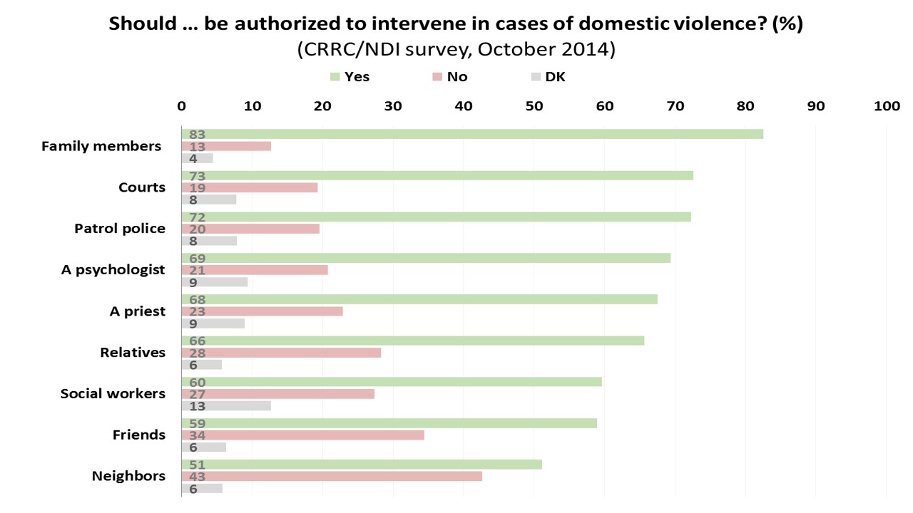 Compared to men, women were more likely to say that each of the groups and institutions asked about should be authorized to intervene.